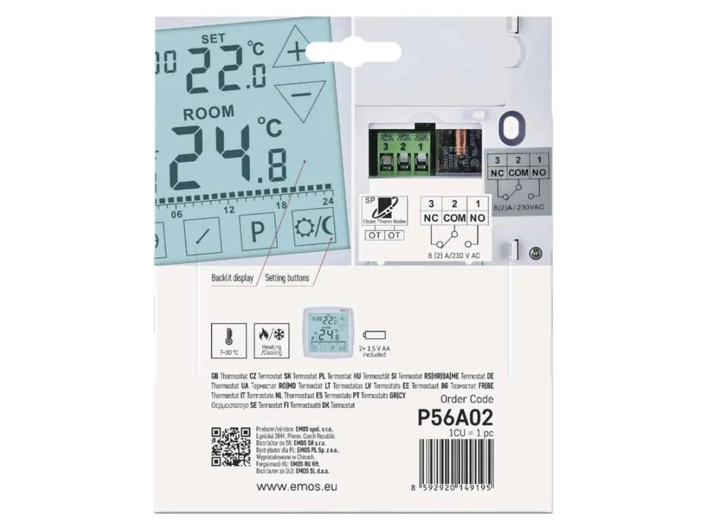 Izbový termostat drôtový programovateľný EMOS OpenTherm