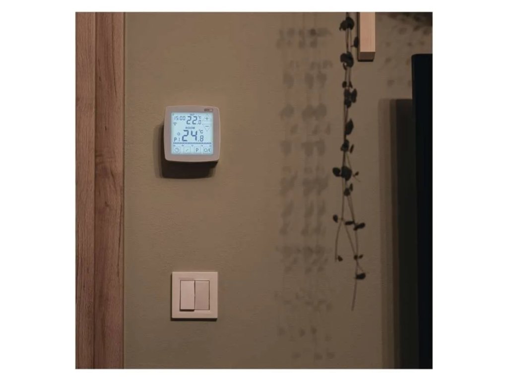 Izbový termostat drôtový programovateľný EMOS WiFi GoSmart- typ ovládania programovateľný elektronický izbový termostat, možnosť ovládania cez mobil (iOS, Android)