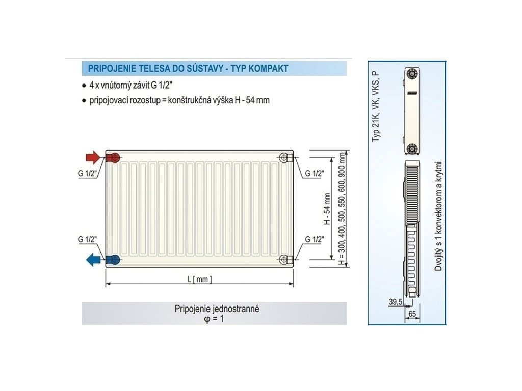 | Typ radiátora: | 21 (2 výhrevné panely - 1 konvektor) |