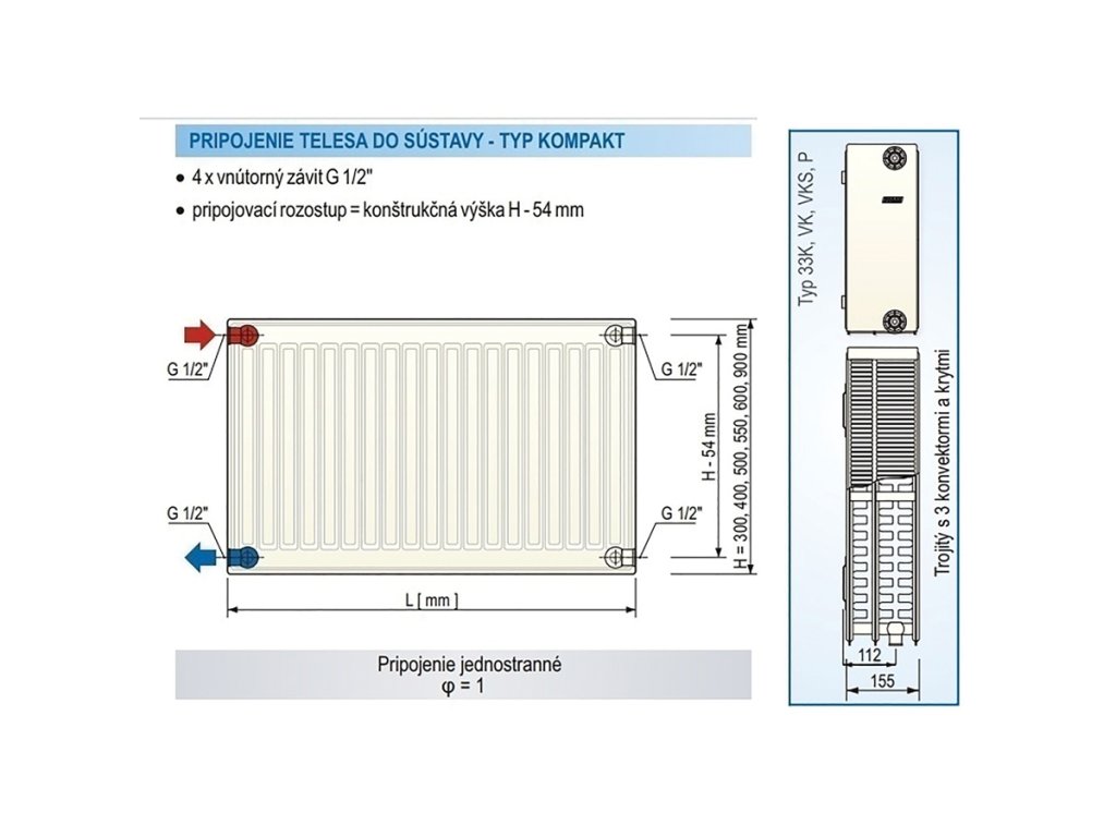 | Typ radiátora: | 33 (3 výhrevné panely - 3 konvektory) |