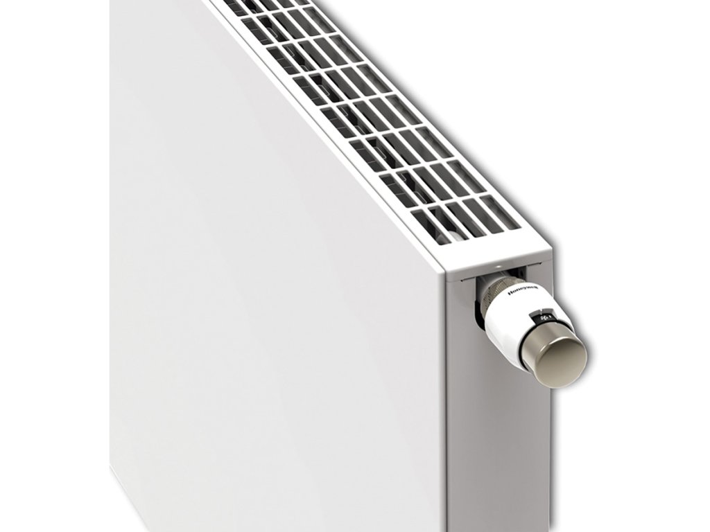 Nízkoteplotné vykurovacie teleso z jemného plechu (hrúbka plechu 1,2 ± 0,09 mm) valcovaného za studena podľa EN 442-1 s postrannými krytmi, hornou mriežkou a s hladkou čelnou doskou ako kompaktná jednotka.