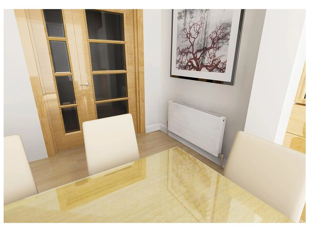 Planar Style (Design Style) – vykurovacie teleso s delenou hladkou čelnou doskou, dekoratívnou mriežkou a so spodným a bočným pripojením.