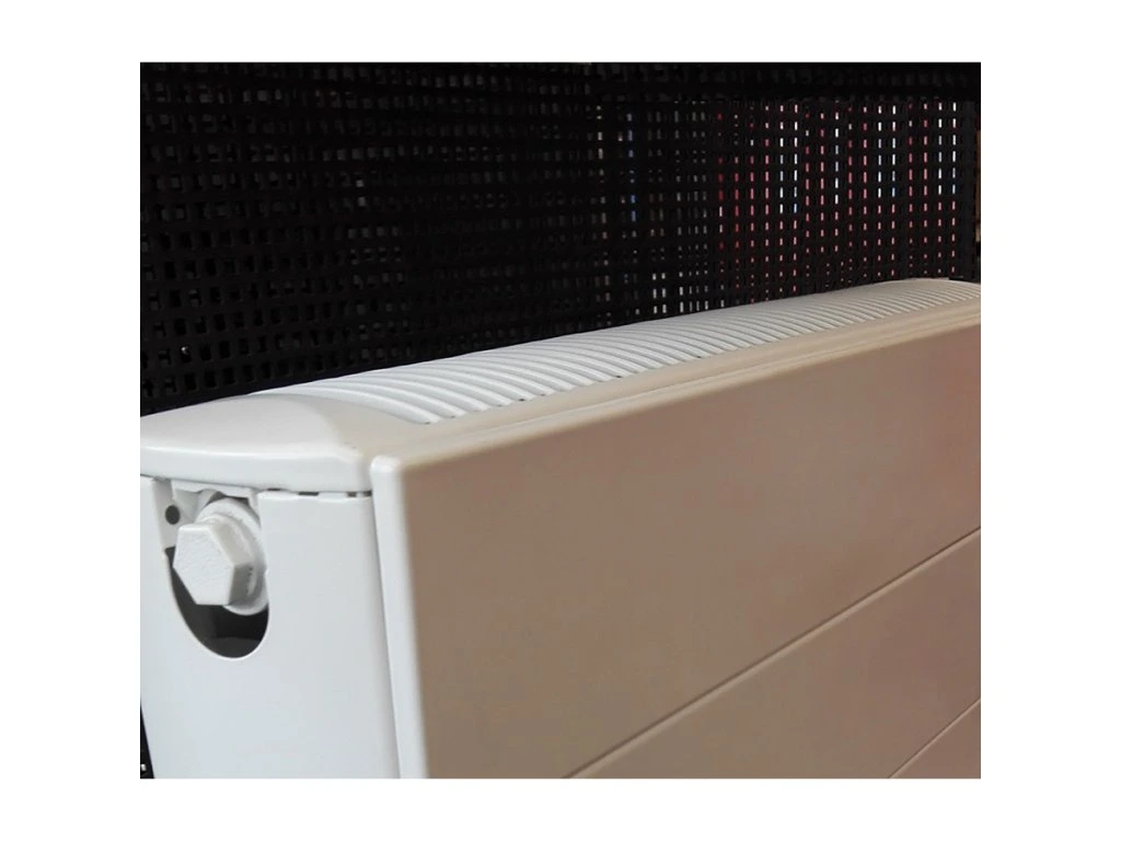 Nízkoteplotné vykurovacie teleso z jemného plechu (hrúbka plechu 1,2 ± 0,09 mm) valcovaného za studena podľa EN 442-1 s postrannými krytmi a hornou dekoratívnou mriežkou s pozdĺžne delenou hladkou čelnou doskou ako kompaktná jednotka.