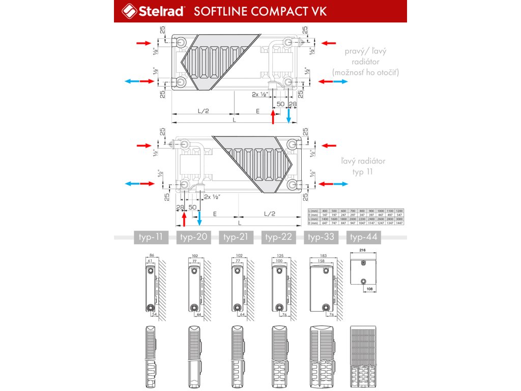 Panelový radiátor Stelrad Softline Compact 11VK 400 x 2000